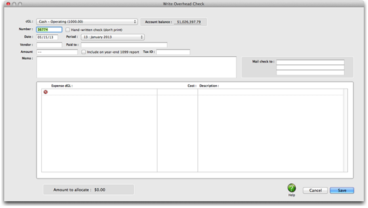 Checks can be written individually to a vendor to pay one or more unpaid payables, job costs, overhead expenses, or for employee expense advances. A check can be edited any time before it is posted. See below for step-by-step instructions.