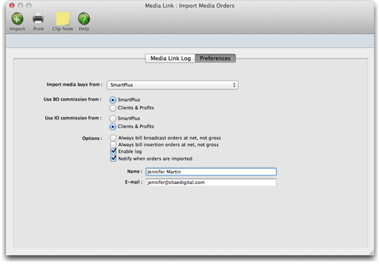 Select the media buying system you use from this drop down menu. Media Link imports media orders and invoices from SmartPlus, Strata, Tapscan, and other media buying systems that support the Standard Media Interface.