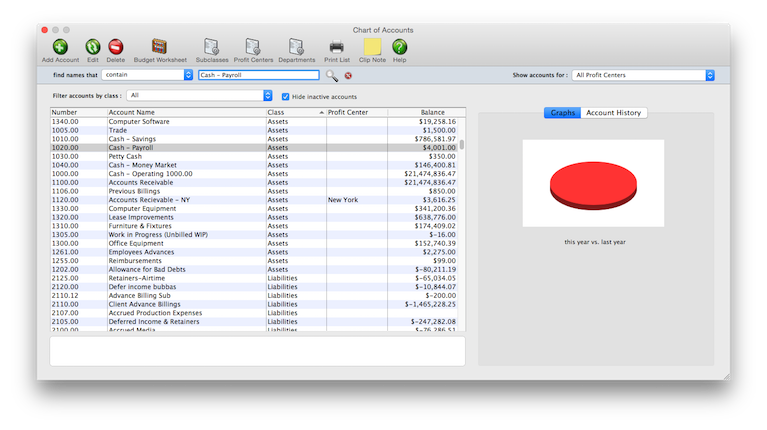 for accounts with activity). Accounts with activity can be edited (except the